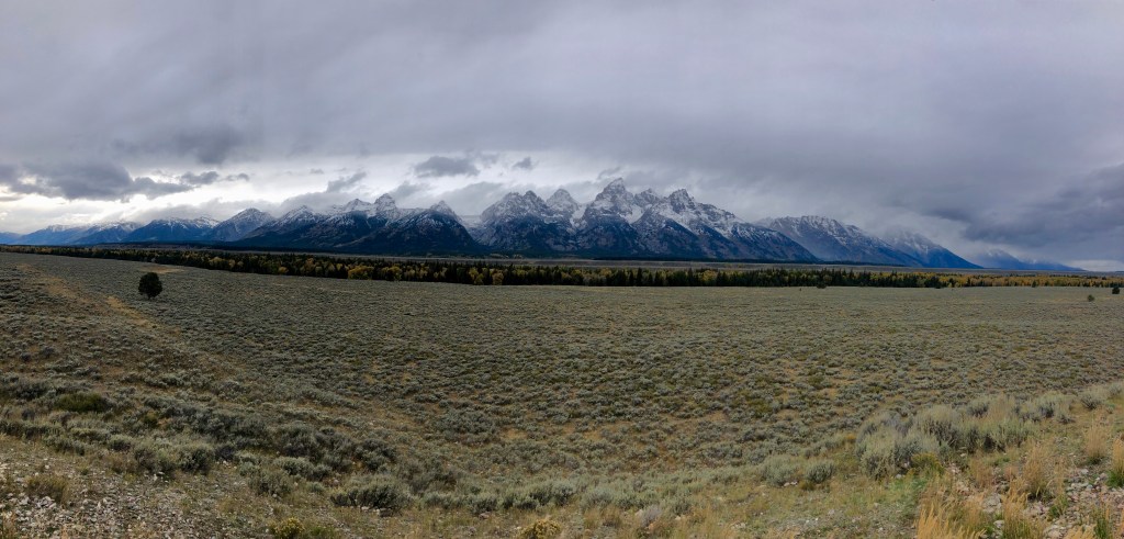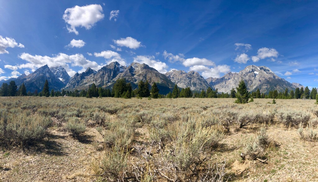 I know I’m from the flat lands of the Midwest, but I’ve seen mountains before. Matt and I always tried to vacation somewhere that has mountains. We love them. We even got engaged on a mountain in Colorado! So, I guess what I’m saying is that I know what a mountain looks like. However, I was not prepared for the mountains in Grand Teton National Park. Driving into the park, you suddenly see the mountains and it is startling. They are giant and magnificent. I actually teared up when I saw them for the first time. True, I was also on my period and already hypersensitive, BUT STILL, they are amazing, people!!
