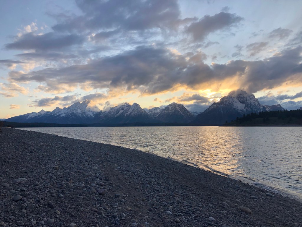 We camped at Signal Mountain Campground which is along Jackson Lake. The campsites were so small though that we had to block the one-way road for fifteen painful minutes as Matt and I furiously unhitched our trailer from the truck. Thank God it wasn’t our first rodeo or else it would have taken us twice as long. We had to perform in front of three cars that were waiting for us to finish so they could continue driving. It was really stressful, er I mean fun 🙂