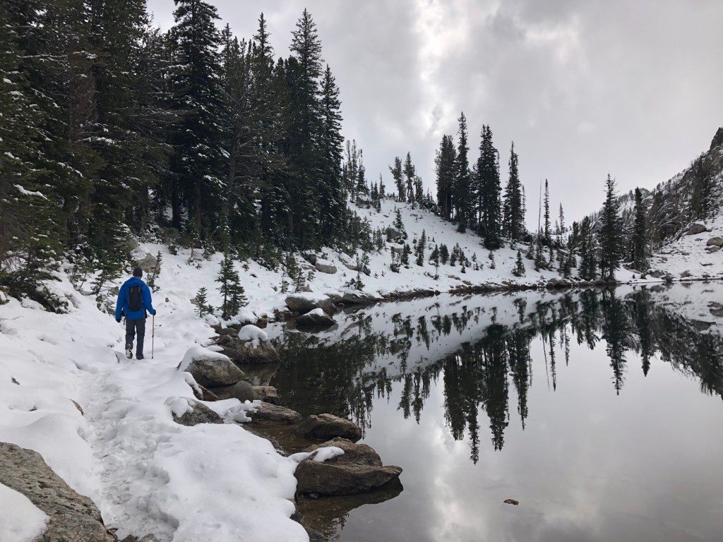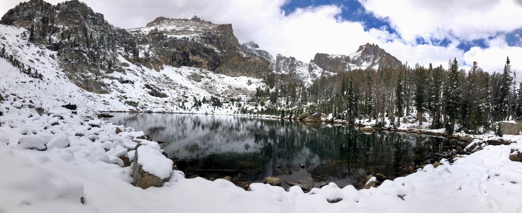 Julia and Brendan stayed with us that night in the RV and left the next morning. Matt and I decided to stay in the Tetons for a few more days. We did some other hikes: Death Canyon, Hidden Falls, Phelps Lake, and Amphitheater Lake. While there, the weather took a cold turn dropping the night temperatures to below freezing. During our hike to Amphitheater Lake, we were greeted by a foot of snow at the top which provided us unique views of the lakes.