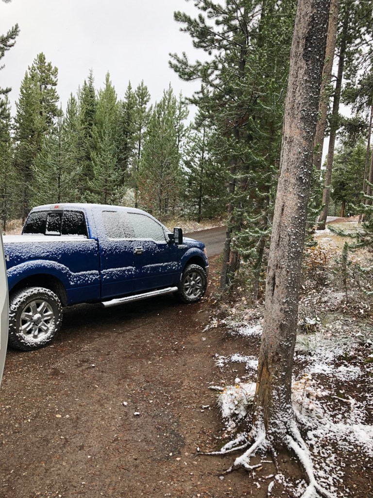 Our last morning in Teton, we woke up to snow on the ground at our campsite. As lovely as it was, we were ready for some warmer weather. We brushed the snow off our truck and headed to Idaho.