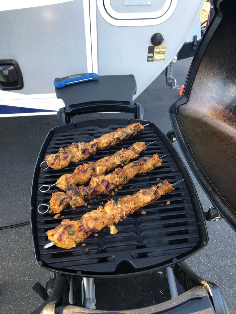 Grilling is the key for RV cooking sanity. It allows for more counter space and a better teamwork approach. I can marinate the meat the night before. Then, the next day while Matt’s outside cooking the meat, I’m doing whatever else needs to be done for the meal in our small kitchen. Divide and conquer babyyyy!!